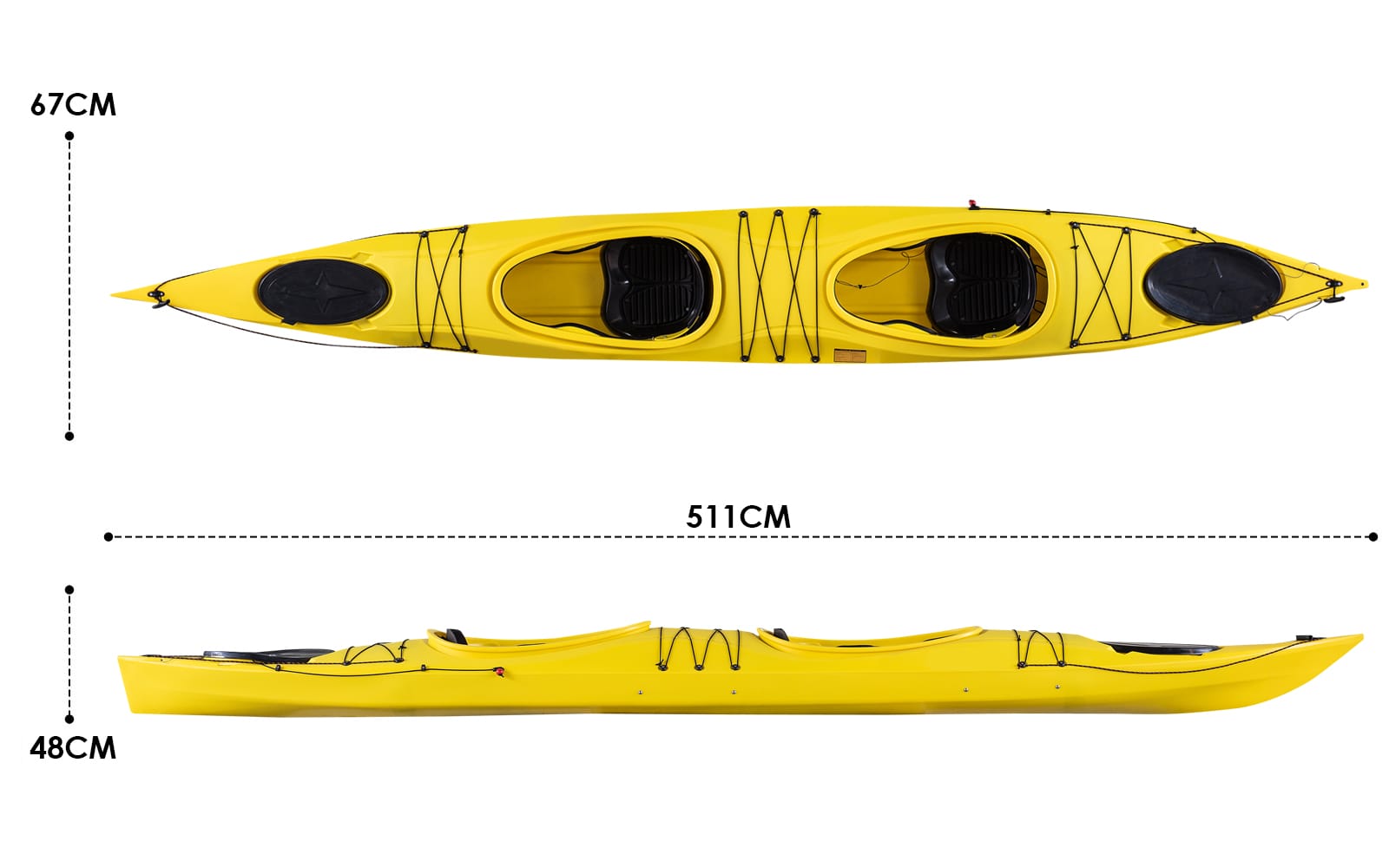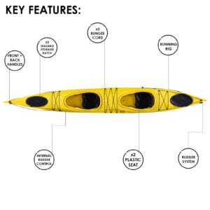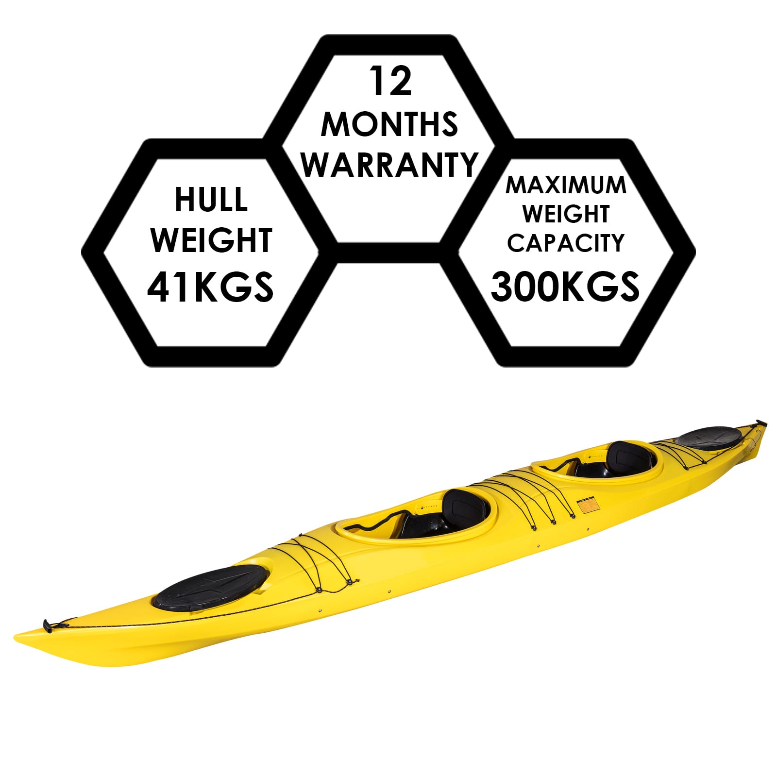 The Rapier Double is a professional double seater journey kayak, stable and quick due to its bottom design and length. The seat room is spacious and allows for suitable leg space and a comfortable paddling position.